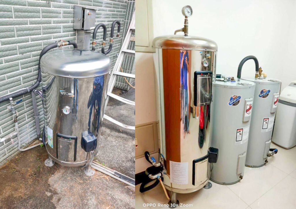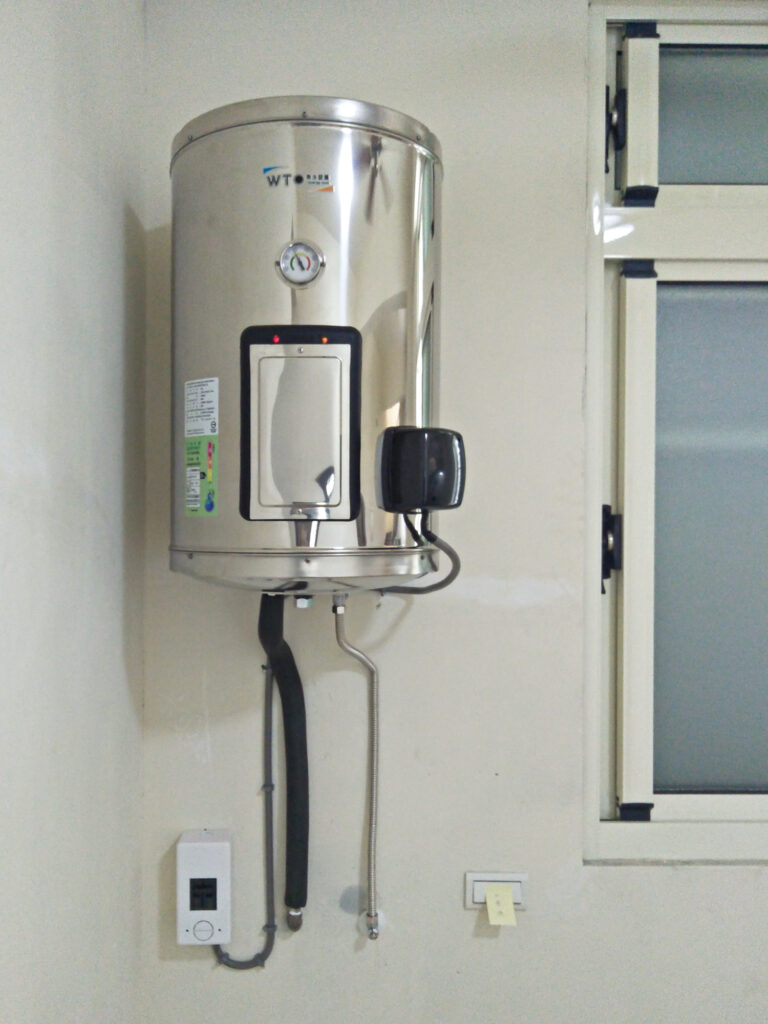 「設置於室內」的貯備型電熱水器,事先將熱水器桶內裝滿水後以「額定電功率電熱管」在一定時間內加熱至「設定溫度」,熱水預先儲存保溫,可一次輸出大量熱水提供沐浴使用的熱水器。